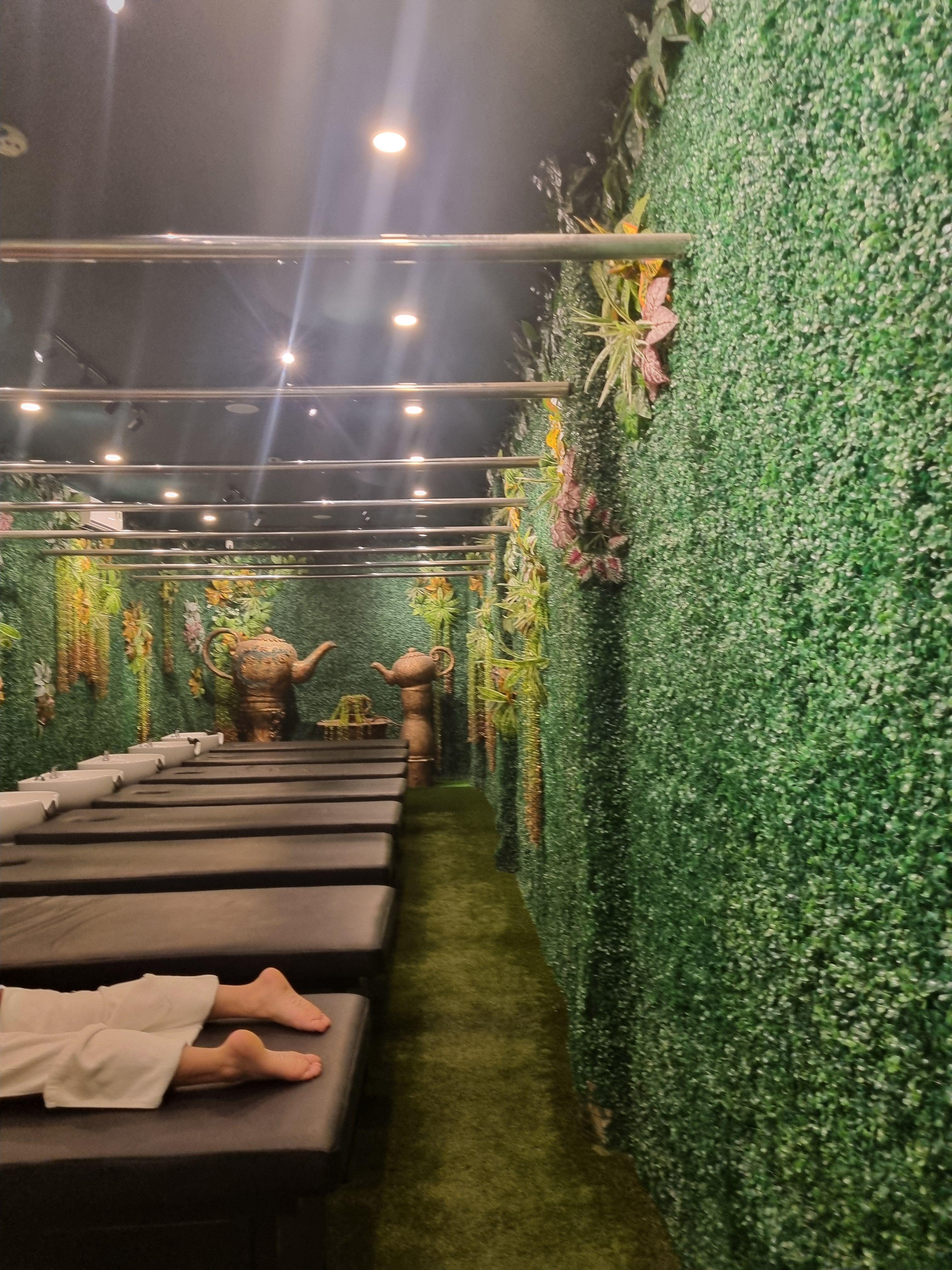 실내로 들어서면 직원분들이 바로 안내해주는데, 안쪽은 작은 프라이빗 룸 형태로 되어 있어요. 2~3명이 같이 들어갈 수 있는 공간인데, 벽으로 완전히 막혀 있지 않고 방들이 쭉 연결된 구조라 답답하지 않으면서도 아늑한 분위기를 줍니다. 저는 3층에서 메인 케어를 받고, 마지막에는 1층으로 내려가서 등 밟기 서비스를 받았어요.